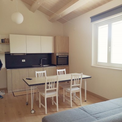 Proponiamo in locazione, per lavoratore transitorio, open space nuovo in villa plurifamiliare: soggiorno/pranzo, letto matrimoniale, servizio.